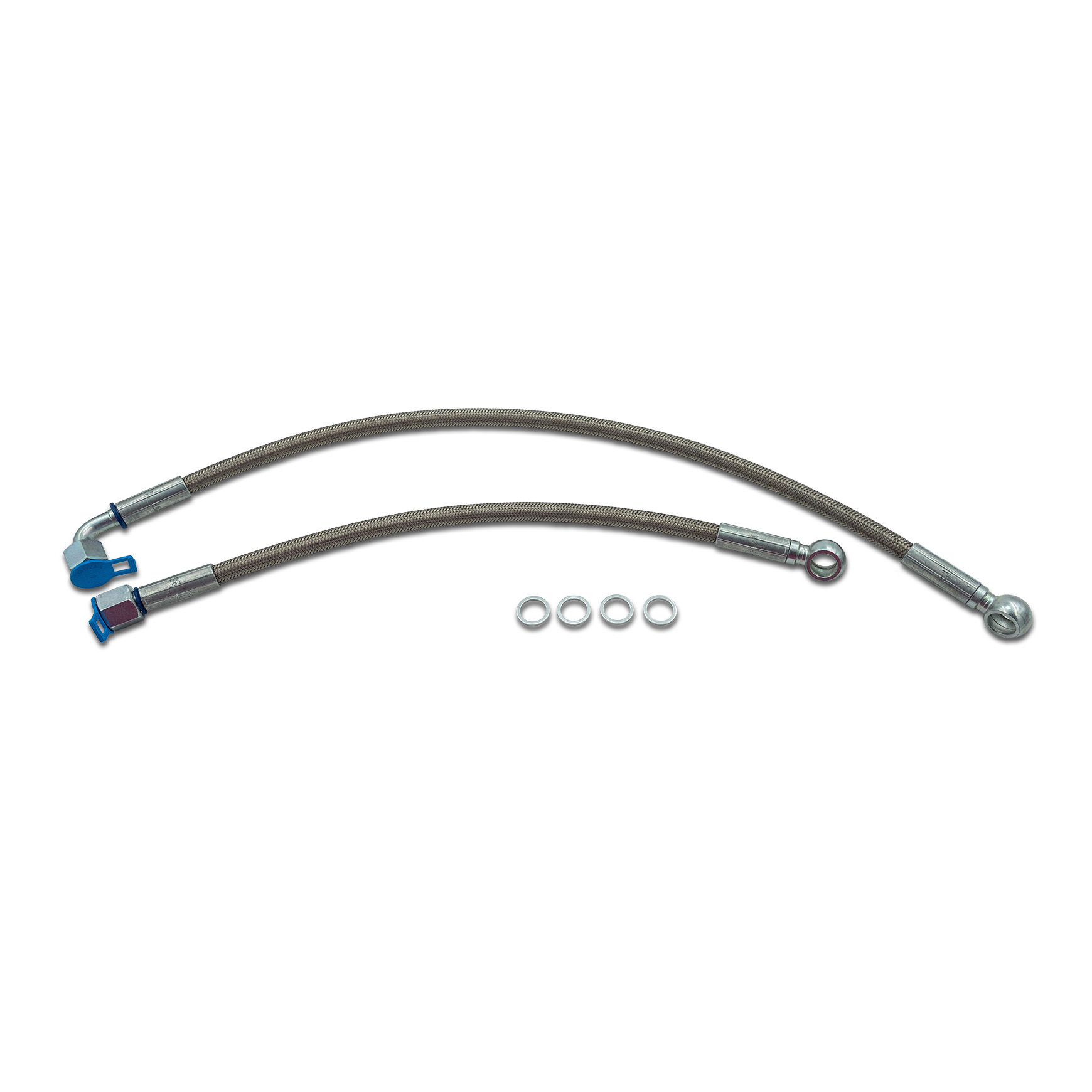 Hochwertige, Stahlflex ummantelte Ölleitungen für die Ölkühler der Monolever Modelle R 100RS und R 100RT, sowie für die Paralever Modelle R 100R und R 100R Mystic.
