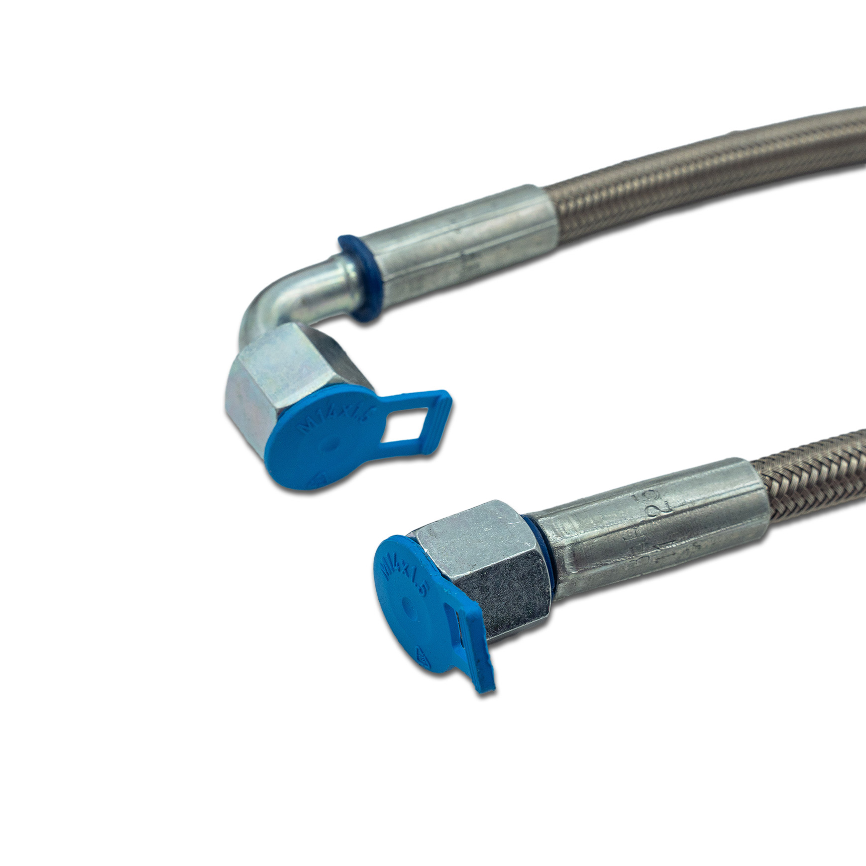 * 1 Stahlflex Ölleitung Vorlauf, Länge 450mm mit abgewinkeltem Ölkühler Anschluss